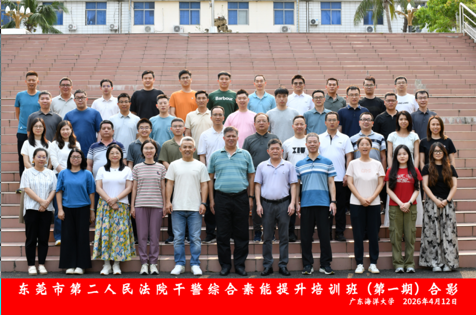 为深入学习贯彻习近平新时代中国特色社会主义思想,进一步提升法院干警的政治素养、业务能力和履职本领,4月13日下午,东莞市第二人民法院干警综合素能提升培训班(第一期)在我校海滨校区正式开班。东莞市第二人民法院党组副书记、副院长陈义权,党组成员、副院长陈浩辉,审判委员会专职委员曾旭,继续教育学院副院长潘康培和培训班44名学员参加开班仪式。