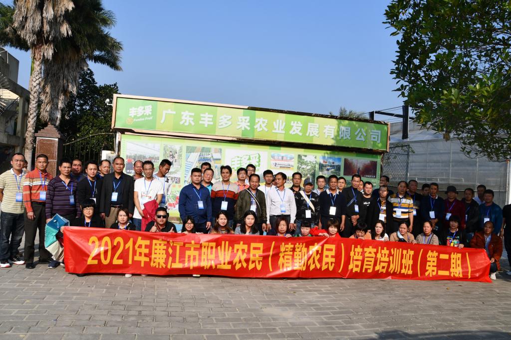 广东丰多采农业发展有限公司是广东省重点农业龙头企业,在产供销方面及开展“公司+基地+农户”的产业化经营方面拥有丰富经验;2010年,公司在合山镇的农业现代化示范区被省农业厅定为省级农业现代化示范区,该示范区有2000多亩特色果蔬生产基地(其中包括近500亩温室大棚特色果蔬生产基地),基地内建立的大面积的实训场所能很好地容纳学员接受实训操作培训。